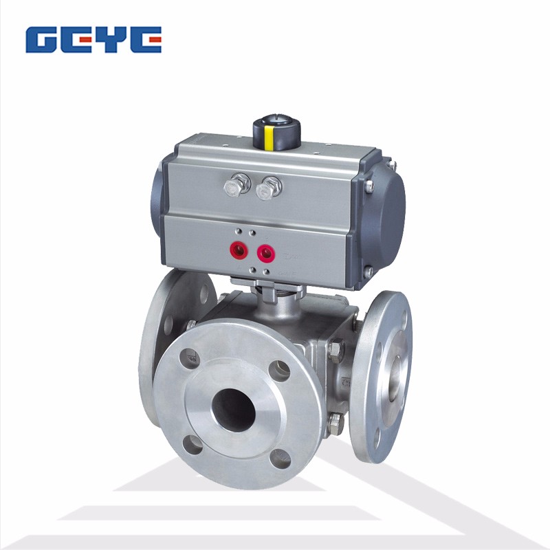 L型、T型氣動三通球閥Q644F,Q645F氣動三通球閥產(chǎn)品簡述: Q644F,Q645F氣動三通球閥可靠性高,設(shè)計實現(xiàn)了輕量化,使用壽命長,流通能力大,阻力小。氣動三通球閥有T型和L型。T型三通球閥能使三條正交的管道相互聯(lián)通和切斷第三條通道,起分流、合流作用。L型三通球閥只能連接相互正交的兩條管道,不能同時保持第三條管道的相互連通,只起分配作用。 &nbs